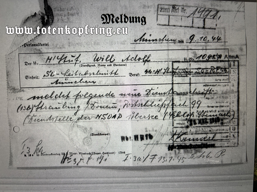 from the SS due to alcohol at the end of 1935. The ring was reissued to him in 1938. Adolf Will was an officer who initially served